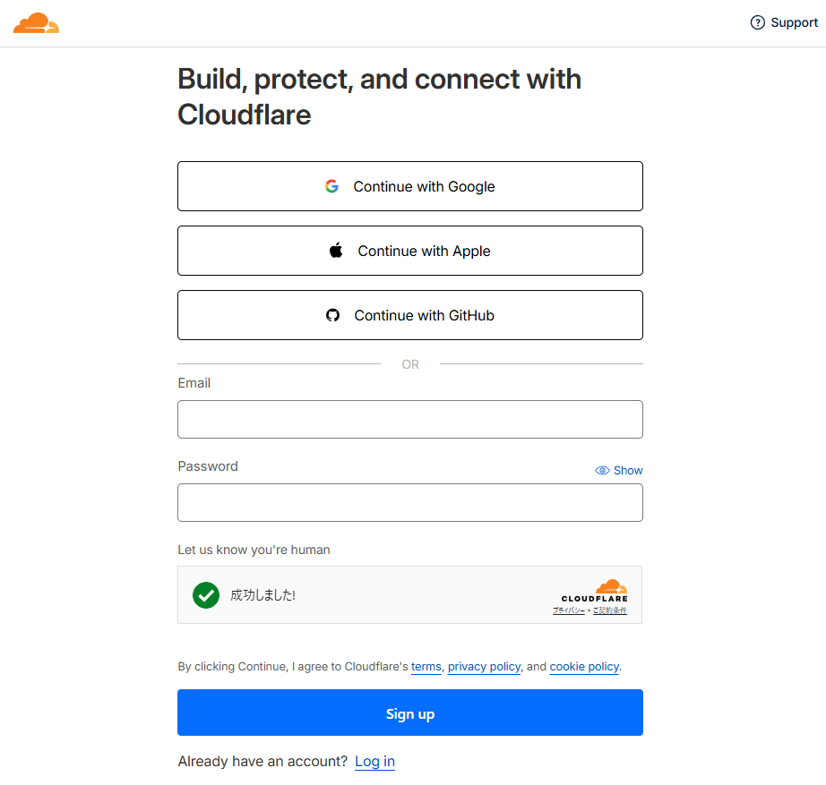 https://www.cloudflare.com にアクセスします。