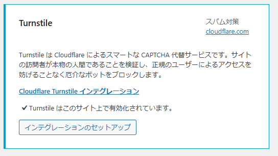 「Turnstile はこのサイト上で有効化されています。」と表示されます。