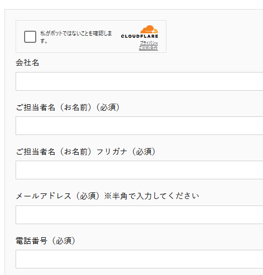 お問い合わせフォームの上にボット対策のメッセージが表示されたらOK。