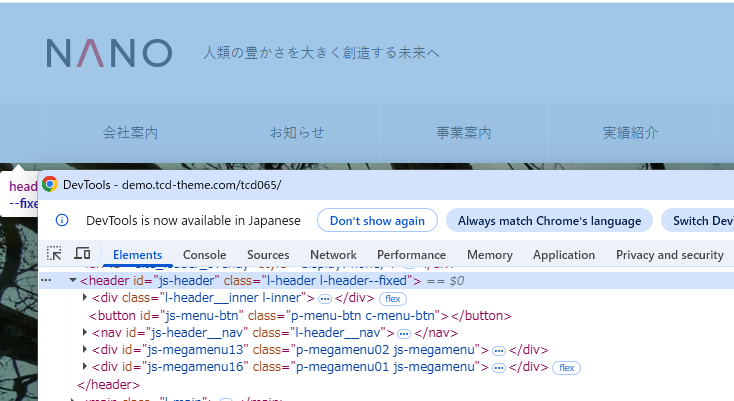TCDテーマNANOのページ上部のメインナビゲーション(グローバルメニュー)をカスタマイズしたくていろいろ触っているので覚書。
