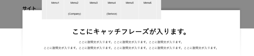そうすると、本来キャッチフレーズがあった箇所にグローバルメニューが移動します。